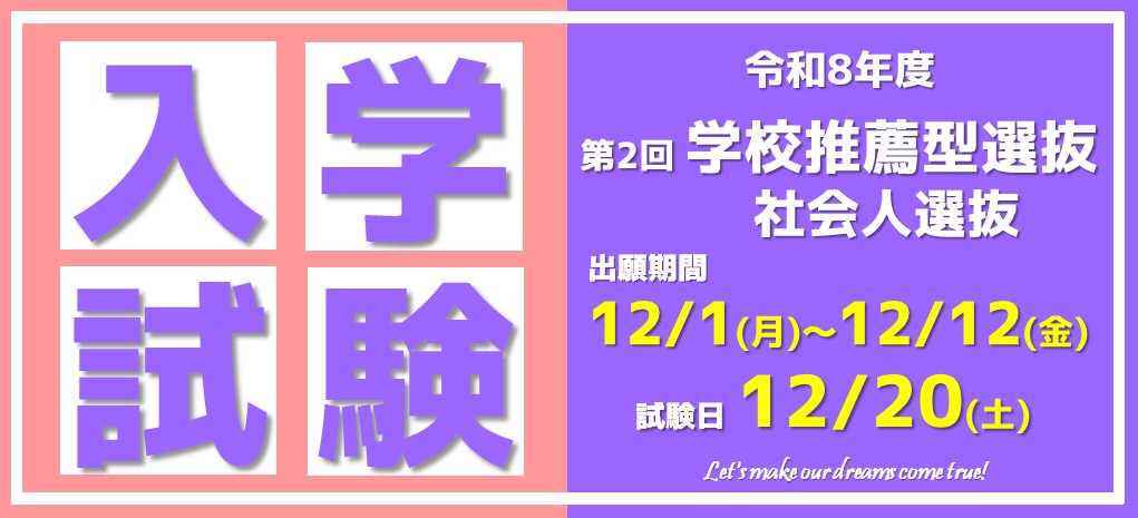 【令和8年度】第1回 学校推薦型選抜・社会人選抜の出願受付が開始されます