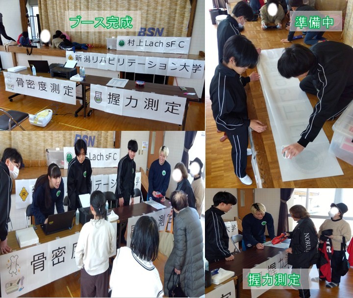 地域活動では、村上LachsFCでのフィジカル測定を中心に取り組みました。選手一人ひとりの体力や筋力、などを測定し、データの記録や分析を行いながら、コンディション管理の重要性を学びました。また、選手やスタッフと連携し、チームを支えるやりがいや責任感も実感しました。さらに、転倒予防教室にも参加し、高齢者の方々への運動指導や声かけを通して、地域に貢献する大切さや人と関わる力を身につけることができました。